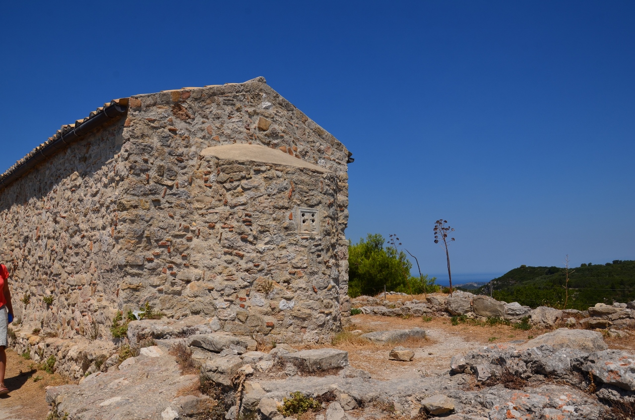 En effet, le matin venu, direction la colline qui surplombe les magnifiques criques et l’abbaye construite sur une petite péninsule. Le belvédère du café Golden Fox nous offre une vue irréelle sur la côte que nous ne nous privons pas de déguster un long moment. Puis direction les ruines du château d’Angelocastro que nous assaillons au prix d’une marche de 30 minutes en côte sous une chaleur démentielle, mais le paysage justifie l’effort (je vous laisse en juger).