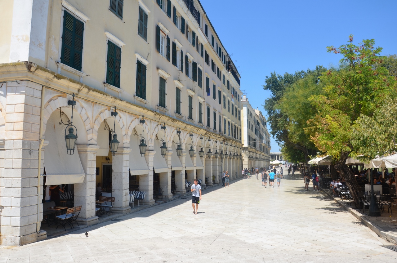 Pour notre dernier jour à Corfou nous visitons la ville du même nom. Tranquillement garé dans le port depuis lequel nous quitterons les lieux le soir venu, nous empruntons un bus touristique à toit ouvert (c’est la deuxième fois de notre vie que nous essayons ce genre de tour, la première fois fut à Seattle). Cette ville vaut vraiment  le déplacement de par son histoire, ses forteresses, ses ruelles, sa grande place (la plus grande de Grèce), ses arcades (construites par Murat du temps de l’occupation par Napoléon) et sa chapelle construite en plein milieu de la mer (Konani). La journée est harassante mais géniale et met un point d’orgue à la visite de ce joyaux naturel et culturel de l’Adriatique, trop souvent perçue de l’extérieur comme une de ces nombreuses, mais sans charme usine à bronzer.