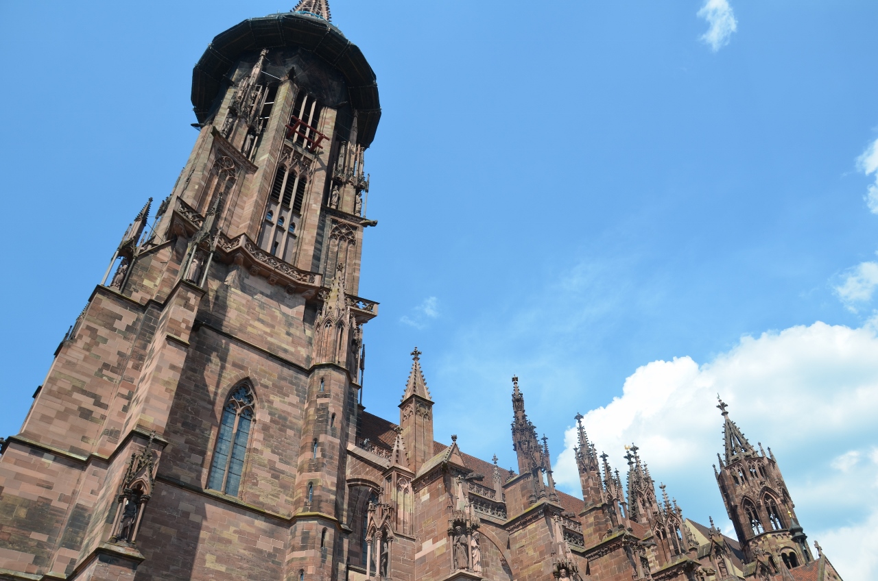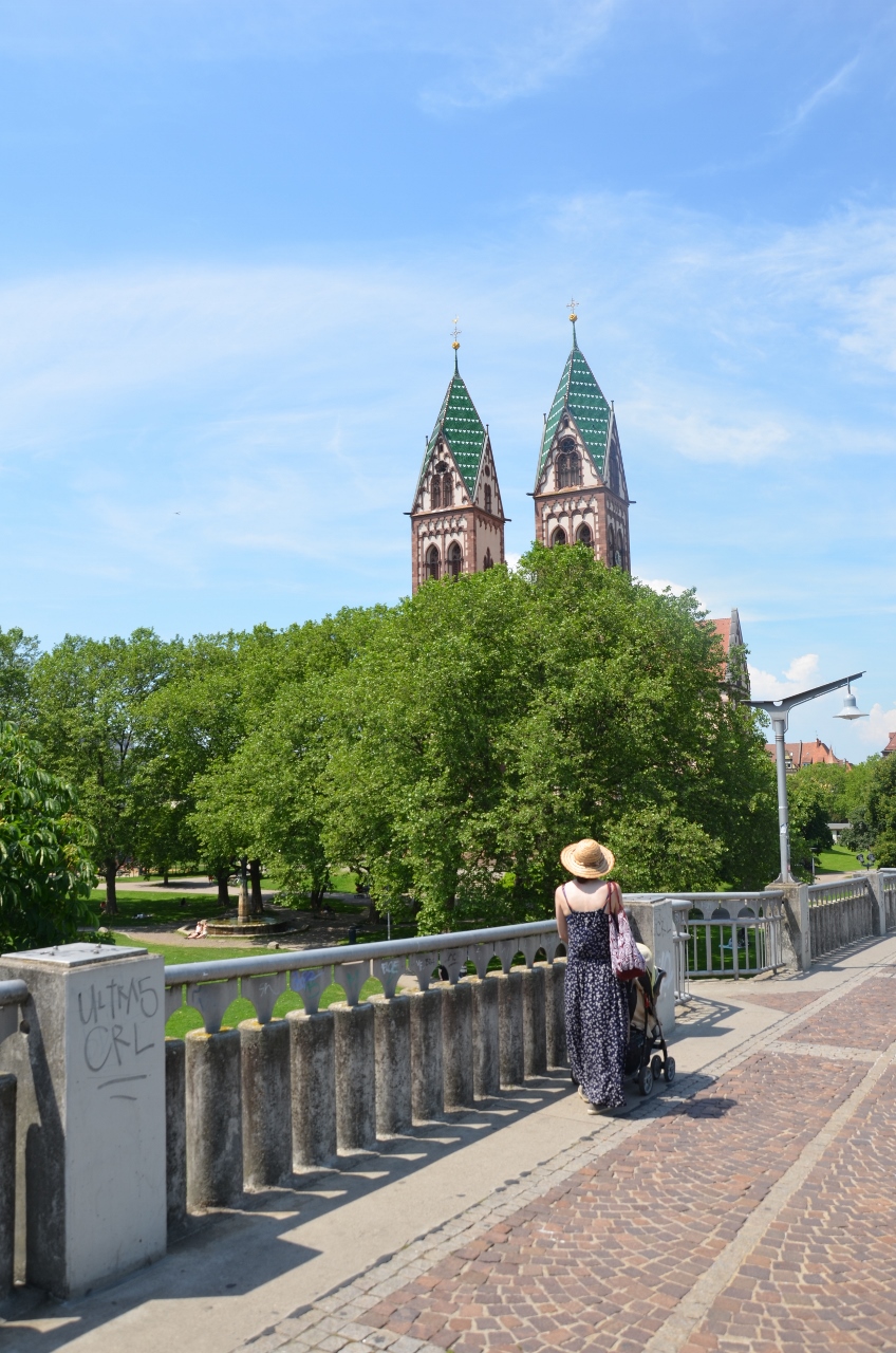 Posés comme des papes nous profitons du village, des supers piscines, des installations impressionnantes de fonctionnalité et de propreté. Une nuit plus tard toute la famille prend le train en direction du centre ville de Freibourg où nous découvrons à notre rythme cette superbe ville nichée au pied de la forêt noire, mixe étonnant entre histoire, modernisme et nature. Nous sommes émerveillés par la Freibourg Minster, l’impressionnante cathédrale et ses moulures qui comme nous l’expliquons à Léon était “le moyen de l’époque pour raconter des histoires”.
