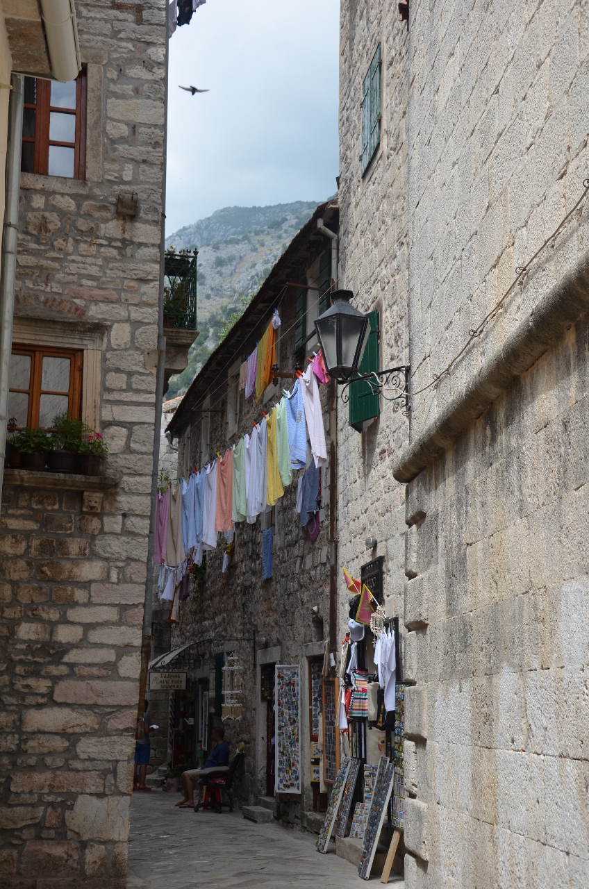 Laissez-nous maintenant-vous conter Kotor, la Dubrovnik Monténégrine, ses remparts, son centre charmant, ses maisons en pierre, ses petites boutiques. Cette ville est belle, elle nous inspire et chose qui n’a plus de prix n’est pas inondée par touristes. Nous « baguenaudons » en famille dans les petites ruelles imprégnés par une atmosphère paisible et laissant transparaître son passé glorieux.
