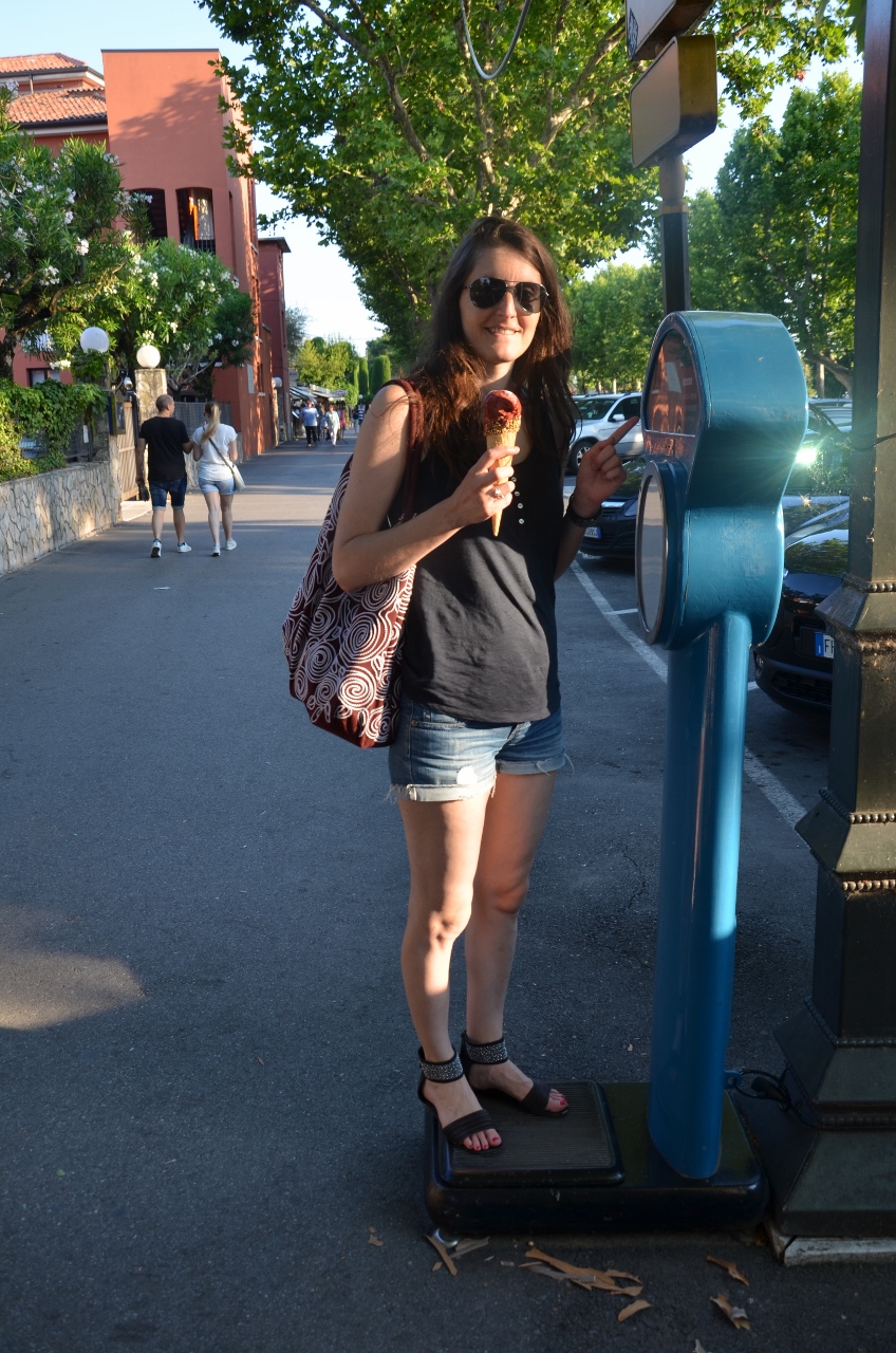 Un négociant en vin Piémonté, rencontré la veille sur le marché nous conseille de faire halte dans la petite presqu’île fortifiée de Sirmione. Nous optons donc pour un camping, dans les environs, bien que cher et sans âme, cette usine à touristes nous permet de partir à l’assaut l’après-midi même de la fameuse ville bondée (et oui les dimanches les Italiens sortent en masse) et de déguster une sublime glace coco, Myrtille au bord du château. Elle restera sans aucun doute, un moment dans la mémoire de Léon.